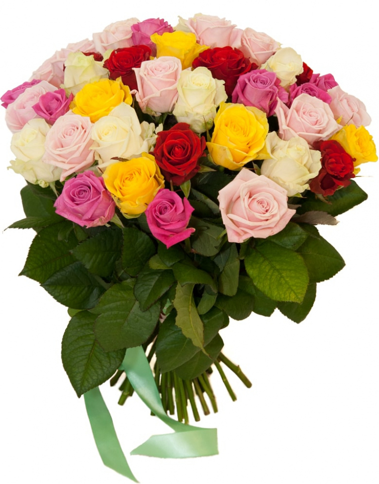 Великолепное соединение утонченных белых и насыщенных красных, солнечных желтых и нежных розовых роз - это букет, способный рассказать о бушующих чувствах в Вашей душе - нежной влюбленности, искренности и чувственности, страсти и надежде на взаимность. Этот букет станет замечательным подарком для Вашей избранницы, а также он прекрасно украсит любое торжество, подарив всем настроение праздника.